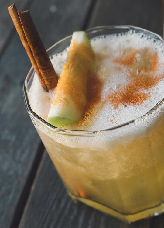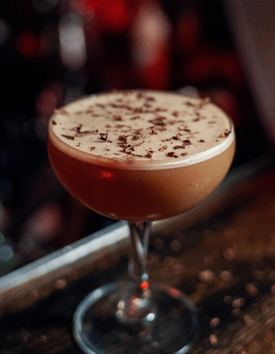 A combination of our house vodka, fresh blood currant juice, beet sugar, and rosehip liqueur is finished with a splash of effervescent water and Azeyma rosehip garnish. Like a kiss from the Goddess of the Sun, this drink will keep you fired up for a long night of dancing with your sweetheart.