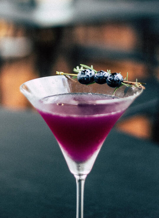 For this dark and decadent drink, we've blended dark berry vodka, black currant liqueur, mixed berry juices and topped it with a splash of Hingan ginger beer. The dark color doesn't give any hint to the crisp berry and ginger notes in this drink that will brighten your palate and keep you on the dance floor all night.
